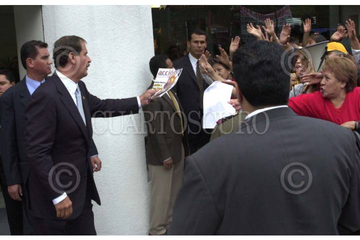 México D.F 27 Abril 2004.- El presidente Vicente Fox saluda a Arcenio Díaz Escalante, director del FONACOT al término de la ceremonia de aniversario de su creación. FOTO: Eunice Adorno/CUARTOSCURO.COM