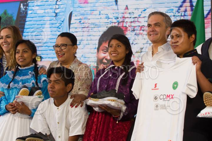 CIUDAD DE MÉXICO, 21JUNIO2017.- Jovencitas pertenecientes a diferentes comunidades indígenas recibieron zapatos y uniformes por parte del gobierno de la Ciudad de México, en Plaza Tlaxcoaque. Los beneficiarios juegan fútbol dentro del programa deportivo Glorias del Deporte. FOTO: MOISÉS PABLO /CUARTOSCURO.COM