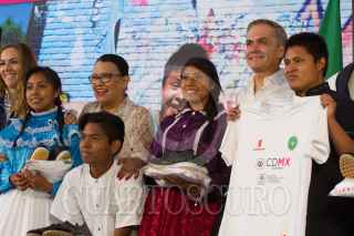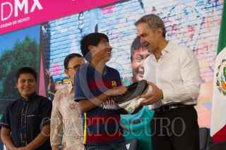 CIUDAD DE MÉXICO, 21JUNIO2017.- Jovencitas pertenecientes a diferentes comunidades indígenas recibieron zapatos y uniformes por parte del gobierno de la Ciudad de México, en Plaza Tlaxcoaque. Los beneficiarios juegan fútbol dentro del programa deportivo Glorias del Deporte. FOTO: MOISÉS PABLO /CUARTOSCURO.COM