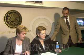 México D.F 27 Abril 2004.- Los priístas Giorgina Trujillo, Laura Alicia Garza y Carlos Rojas dieron una conferencia de prensa para hablar del genoma humano. FOTO: Eunice Adorno/CUARTOSCURO.COM