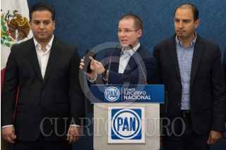 CIUDAD DE MÉXICO, 21JUNIO2017.- Ricardo Anaya, presidente nacional del Partido Acción Nacional, Damián Zepeda, secretario general, y Marco Cortez, coordinador de diputados, encabezaron una conferencia de prensa donde mostraron evidencia de que varios funcionarios y miembros del partido que, han sido espiados por años. Esto a raíz de la investigación que dio a conocer The New York Times sobre los programas y contratos de espionaje que ha utilizado el gobierno federal para espiar a activistas, defensores de derechos humanos, y políticos de oposición. FOTO: TERCERO DÍAZ /CUARTOSCURO.COM
