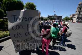 TOLUCA, ESTADO DE MÉXICO, 21JUNIO2017.- Ocupantes del predio El Risco, en Tlalnepantla se manifestaron frente a Palacio de Gobierno, para exigir la intervención de las autoridades estatales para poder regresar al lugar en donde vivían, y del cual fueron desalojados al ser defraudados en la compra de más de 300 lotes. FOTO: ARTEMIO GUERRA BAZ /CUARTOSCURO.COM