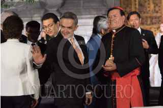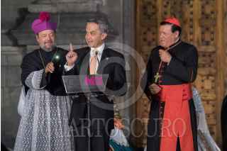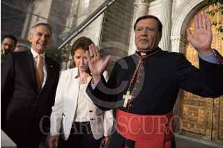 CIUDAD DE MÉXICO, 21JUNIO2017.- Miguel Ángel Mancera Espinosa, jefe de gobierno, MAría Cristina García Cepeda, secretaria de culltura, y Norberto Rivera, cardenal de la iglesía católica, encabezaron el encendido de la Catedral metropólitana, como parte de una campaña de embellecimiento a la ciudad. FOTO: TERCERO DÍAZ /CUARTOSCURO.COM