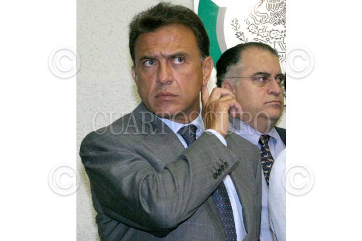 México D.F 27 Abril 2004.- Guillermo del Valle del PRI y Jorge Messeguer Guillen del PRD, presidentes estatales se reunieron en la Cámara de Diputados para tratar sobre el caso del gobernador de Morelos Sergio Estrada Cajigal. FOTO: Sandra Perdomo/CUARTOSCURO.COM
