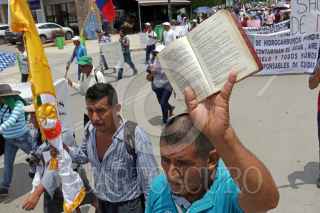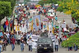 TUXTLA GUTIERREZ, CHIAPAS, 22JUNIO2017.- Desde muy temprano partió una caravana por el Movimiento Indígena del Pueblo Creyente Zoque, con destino a la capital chiapaneca, manifestando su inconformidad contra la extracción de hidrocarburos en Chiapas y en defensa de la vida y de la tierra. FOTO. JESÚS GARCÍA /CUARTOSCURO.COM