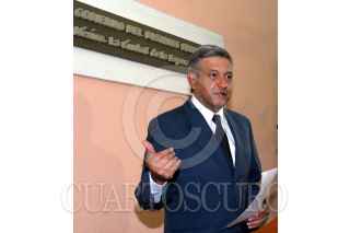 México, D.F. 03 MAYO 2004.- Andrés Manuel López Obrador, jefe de gobierno, durante su conferencia matutina, la cual duró escasos minutos. FOTO: Sandra Perdomo/CUARTOSCURO.COM