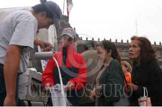 México, D.F.,03MAYO2004.- Largas filas se presentaron en la plancha del Zócalo, luego de que productores de leche de Hidalgo decidieron regalar su producto en protesta por las políticas de la SAGARPA de importar leche del extranjero. FOTO: Moisés Pablo/CUARTOSCURO.COM