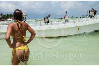 HOLBOX, QUINTANA ROO, 25JUNIO2017.- Turistas disfrutan de las aves en la isla de Holbox. FOTO: ELIZABETH RUIZ /CUARTOSCURO.COM