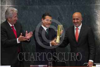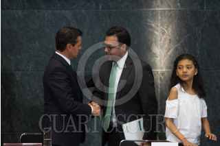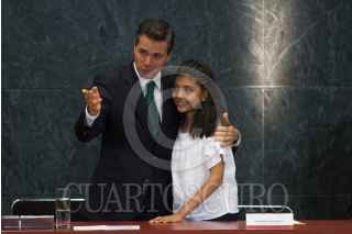 CIUDAD DE MÉXICO, 26JUNIO2017.- Enrique Peña Nieto, Presidente de México, y Alison Amira Tolayo Rebolledo, beneficiaria del programa Punto México Conectado, durante la ceremonia del 4 Aniversario de la Reforma de Telecomunicaciones, en la residencia oficial de Los Pinos. FOTO: MOISÉS PABLO /CUARTOSCURO.COM