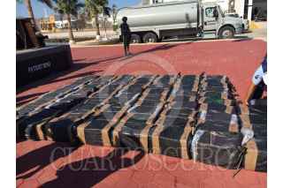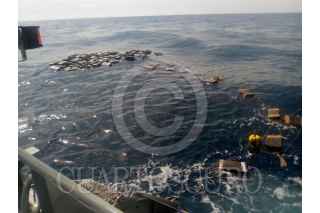 LOS CABOS, BAJA CALIFORNIA SUR, 26JUNIO2017.- Personal de la Armada de México adscrito a la Cuarta Región Naval, a través del Sector Naval de Los Cabos, B.C.S., en funciones de Guardia Costera mediante una operación integral (marítima, terrestre y aérea), aseguró en altamar 76 bultos con un peso bruto aproximado de 1,800 kilogramos, los cuales contenían en su interior paquetes en forma de ladrillo con polvo blanco con las características propias de la cocaína. El aseguramiento se llevó a cabo la madrugada de hoy, ya que por información de inteligencia y trabajos de campo y gabinete, despegó un avión quien avistó una embarcación sospechosa, aproximadamente a 90 millas náuticas (166.68 kilómetros) al sur de Cabo San Lucas, B.C.S.; por lo que pidió apoyo a distintas unidades de superficie operando en el área, para que se dirigieran a la posición geográfica de avistamiento para su inspección. FOTO: SEMAR /CUARTOSCURO.COM