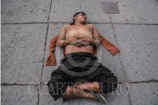 CIUDAD DE MÉXICO, 27JUNIO2017.- Un sujeto duerme sin camiseta sobre la plancha del Zócalo capitalino. FOTO: TERCERO DÍAZ /CUARTOSCURO.COM
