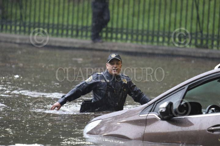 CIUDAD DE MÉXICO., 29JUNIO2017.- Un autobús de transporte de personal de una empresa particular, quedo prácticamente bajo el agua de la lluvia en la parte baja de los puentes de Tacuba en la calzada del mismo nombre. Bomberos de la CDMX y Estado de México, laboraron por varias horas de la noche y madrugada para ayudar a las personas afectadas por la tromba que azoto la zona metropolitana. FOTO: LUIS CARBAYO /CUARTOSCURO.COM