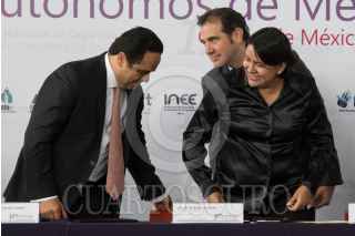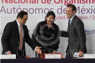 CIUDAD DE MÉXICO, 29JUNIO2017.- Francisco Javier Acuña Llamas, comisionado presidente del INAI, Perla Gómez, presidenta de la Comisión de Derechos Humanos del Distrito Federal, y Lorenzo Córdova, consejero presidente del Instituto Nacional Electoral, participó en la inauguración del 12 Congreso Nacional de Organismos Públicos Autónomos de México, "Cultura Cívica, Cuidadanía Integral y Democracia". FOTO: TERCERO DÍAZ /CUARTOSCURO.COM