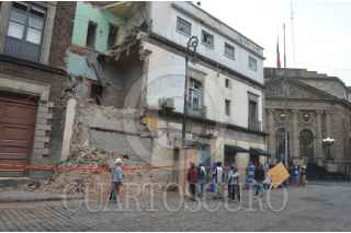 CIUDAD DE MÉXICO, 29JUNIO2017.- Una casona abandonada ubicada en Donceles frente a la Asamblea Legislativa se derrumbó debido a las fuertes lluvias; no se reportan víctimas hasta el momento. FOTO: ARMANDO MONROY /CUARTOSCURO.COM