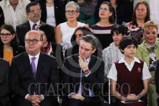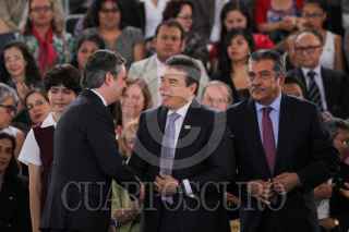 CIUDAD DE MÉXICO, 29JUNIO2017.- Aurelio Nuño, secretario de Educación Pública, y Juan Díaz de la Torre, líder del Sindicato Nacional de Trabajadores de la Educación, durante la presentación de los nuevos planes y programas de estudio creados a partir de la aplicación de la Reforma Educativa. FOTO: GALO CAÑAS /CUARTOSCURO.COM