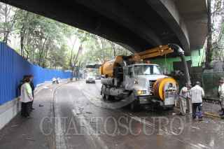 CIUDAD DE MÉXICO, 29JUNIO2017.- Trabajadores del gobierno de la Ciudad de México desazolvan las coladeras en Legaría y calzada México-Tacuba, que quedo inundada día de ayer por la tromba que azotó la capital. FOTO: ANTONIO CRUZ /CUARTOSCURO.COM