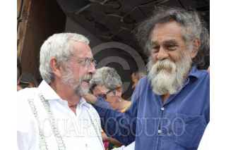 OAXACA, OAXACA, 03JULIO2017.- El rector Enrique Graue Wiechers; el gobernador de Oaxaca, Alejandro Murat Hinojosa, y el artista plástico Francisco Toledo signaron un convenio de colaboración entre la UNAM y el Centro de las Artes de San Agustín, en el Instituto de Artes Gráficas de Oaxaca, que fomentará la movilidad de académicos y estudiantes, así como programas de servicio social para rescatar y preservar la riqueza cultural y artística de la entidad. FOTO: UNAM /CUARTOSCURO.COM
