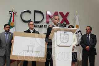 CIUDAD DE MÉXICO, 03JULIO2017.- Planos de las nuevas modificaciones para el proyecto de la ampliación del Tren Inter Urbano presentados durante la conferencia de prensa en el Antiguo Palacio del Ayuntamiento y que estaba siendo acusado de ecocidio en la zona del bosque “El Ocotal”. Se declaró que gracias a las nuevas adaptaciones no se afectara ningún árbol en la zona. FOTO: GALO CAÑAS /CUARTOSCURO.COM