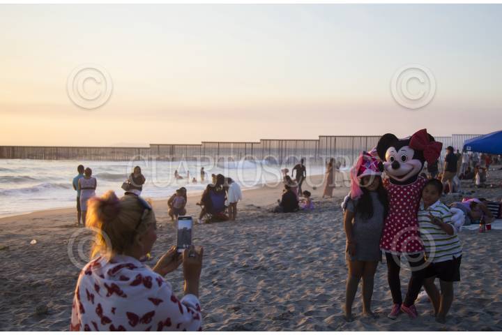 TIJUANA, BAJA CALIFORNIA, 04JULIO2017.- Celebración del Día de la Independencia estadounidense de este lado de la frontera, donde cientos de personas acudieron a un costado del muro fronterizo ubicado en Playas de Tijuana con la intención de observar el espectáculo de fuegos artificiales que son lanzados a varios kilómetros de distancia en la bahía de San Diego. Al lugar asistieron una gran calidad de familias, muchas de ellas deportadas de Estados Unidos. FOTO: CHRISTIAN SERNA/CUARTOSCURO.COM.