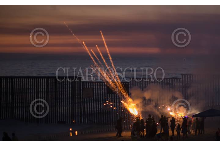 TIJUANA, BAJA CALIFORNIA, 04JULIO2017.- Celebración del Día de la Independencia estadounidense de este lado de la frontera, donde cientos de personas acudieron a un costado del muro fronterizo ubicado en Playas de Tijuana con la intención de observar el espectáculo de fuegos artificiales que son lanzados a varios kilómetros de distancia en la bahía de San Diego. Al lugar asistieron una gran calidad de familias, muchas de ellas deportadas de Estados Unidos. FOTO: CHRISTIAN SERNA/CUARTOSCURO.COM.