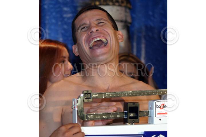 México, D.F., 21MAYO2004.- Julio Cesar Chávez, excampeón del mundo de los pesos medios, pasó sin contratiempos la ceremonia de pesaje para su pelea en contra de Frankie Randall en la Plaza México. FOTO: Moisés Pablo/CUARTOSCURO.COM