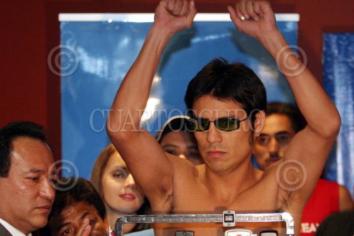 México, D.F., 21MAYO2004.- Julio Cesar Chávez, excampeón del mundo de los pesos medios, pasó sin contratiempos la ceremonia de pesaje para su pelea en contra de Frankie Randall en la Plaza México. FOTO: Moisés Pablo/CUARTOSCURO.COM