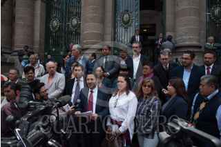 CIUDAD DE MÉXICO, 05JULIO2017.- Martín Batres, líder el pardito Morena en la Ciudad de México, César Cravioto, coordinador de la bancada de Morena, encabezaron un mitin en las escalinatas de la Asamblea Legislativa, para conmemorar los 20 años del cambio de poder del PRI a la izquierda en la capital. Sin embargo enfatizó que desde el 2012, las políticas del PRD en la ciudad no son las adecuadas para los capitalinos. FOTO: TERCERO DÍAZ /CUARTOSCURO.COM