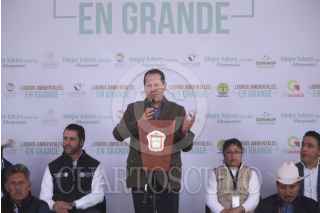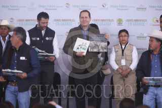 CALIMAYA, ESTADO DE MÉXICO, 05JULIO2017.- Eruviel Ávila Villegas, gobernador del Estado de México y Alejandro del Mazo Maza, Comisionado Nacional de Áreas Naturales Protegidas encabezaron el evento de Logros Ambientales en Grande en las instalaciones del Zoológico de Zacango, en donde el mandatario mexiquense expreso que no se permitirá trasplantar o talar algún árbol para ejecutar alguna obra, refiriéndose al proyecto de los retornos deprimidos de Paseo Tollocan. FOTO: ARTEMIO GUERRA BAZ /CUARTOSCURO.COM