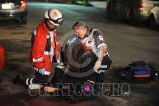 CIUDAD DE MÉXICO., 06JULIO2017.- Una mujer de aproximadamente 25 años, fue arrojada desde una camioneta tipo Suburban de modelo viejo, cuando circulaba por la calle Presidentes esquina con Canarias de la colonia Portales. La mujer con lesiones graves fue atendida y trasladada por una ambulancia de Cruz Roja a un hospital cercano. FOTO: LUIS CARBAYO /CUARTOSCURO.COM