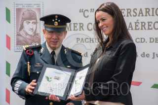 CIUDAD DE MÉXICO, 05JULIO2017.- Se llevo a cabo la ceremonia del 100 aniversario del primer correo aéreo en México que llegó en manos del teniente Horacio Ruíz Gaviño, pionero de la aviación militar en México. El correo consistía en una valija ordinaria que contenía 534 cartas y 67 tarjetas procedentes de Pachuca, Hidalgo. FOTO: MARIO JASSO /CUARTOSCURO.COM
