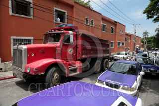 CUERNAVACA, MORELOS, 06JULIO2017.- Taxistas y transportistas del Nuevo Grupo Sindical bloquearon por varias horas el edificio del Ayuntamiento de la Ciudad, ya que exigen reunirse con el alcalde Cuauhtémoc Blanco para tratar el tema del cese de permisos para vendedores ambulantes de otras agrupaciones. El bloqueo provocó la suspensión de las actividades en el edificio público. FOTO: MARGARITO PÉREZ RETANA /CUARTOSCURO.COM