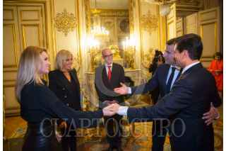 PARÍS, FRANCIA, 06JULIO2017.- Los Presidentes de México y de la República Francesa, Enrique Peña Nieto y Emmanuel Macron, se reunieron con sus esposas, Angélica Rivera de Peña y Brigitte Macron, al término de la cena que le ofreció el Mandatario galo al Jefe del Ejecutivo mexicano en el Palacio del Elíseo. FOTO: PRESIDENCIA /CUARTOSCURO.COM