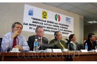 México, D.F., 22MAYO2004.- Porfirio Muños Ledo, embajador de México ante UE, Gustavo Iruegas, participaron en el seminario sobre las relaciones America Latina-Union Europea organizado por el senado. FOTO: Moisés Pablo/CUARTOSCURO.COM