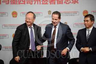 TOLUCA, ESTADO DE MÉXICO, 07JULIO2017.- Eruviel Ávila Villegas, gobernador del Estado de México y su homólogo de la Provincia de Sichuan, República Popular de China, Yin Li, firmaron un Memorándum de Entendimiento entre estos dos estados. FOTO: ARTEMIO GUERRA BAZ /CUARTOSCURO.COM