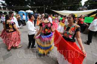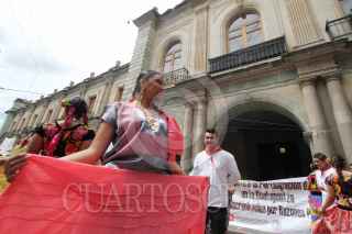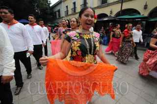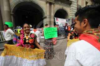 OAXACA, OAXACA, 07JULIO2017.- Integrantes del grupo folklórico de Juchitán de Zaragoza e integrantes de dicho ayuntamiento se manifestaron este viernes, luego de haberse enterado de que dicha delegación no fue tomada en cuenta para participar en las fiestas de la Guelaguetza a realizarse los lunes 17 y 24 de Julio. Los danzantes protestaron con bailables frente al palacio de gobierno, luego de una mesa de diálogo las autoridades estatales aceptaron su participación en la última edición del lunes del cerro. FOTO: ARTURO PÉREZ ALFONSO/ CUARTOSCURO.COM