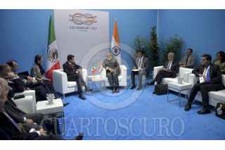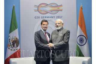 HAMBURGO, ALEMANIA, 08JULIO2017.- En el marco de su participación en la Cumbre de Líderes del Grupo de los 20 (G20), que se celebra en esta ciudad, el Primer Mandatario mexicano, Enrique Peña Nieto, sostuvo hoy una reunión con Narendra Modi, Primer Ministro de la India. FOTO: PRESIDENCIA /CUARTOSCURO.COM