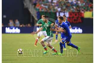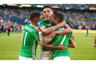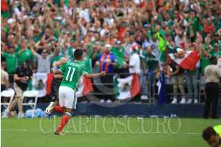 SAN DIEGO, CALIFORNIA, 09JULIO2017.- Acciones del partido de Selección Mexicana de fútbol ante su similar de El Salvador realizado en el estadio Qualcomm, correspondiente al grupo 1 de la Copa Oro, donde el marcador fue de 3-1 a favor de México. En la imagen, jugadores mexicanos festejan el tercer gol anotado por Orbelín Pineda. FOTO: CHRISTIAN SERNA/CUARTOSCURO.COM