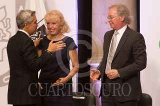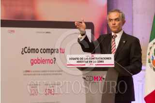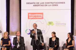 CIUDAD DE MÉXICO, 10JULIO2017.- Miguel Ángel Mancera, Jefe de Gobierno; Rose Gill Hearn, líder de Integridad Municipal en Bloomberg Associates, y George Fertitta, CEO de Bloomberg Associates, durante la presentación del "Desafío de las contrataciones abiertas en la Ciudad de México, en el evento presentaron el portal "Tu Ciudad, tus datos", con estas iniciativas se pretende poner al conocimiento de toda la ciudadanía 320 contratos que implican 700 millones de pesos de gasto público de las secretarías de Obras, Finanzas, Medio Ambiente, Protección Civil y Oficialía Mayor. FOTO: MOISÉS PABLO /CUARTOSCURO.COM