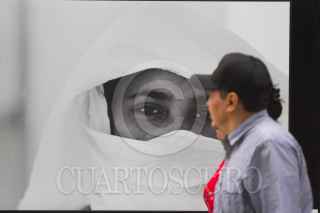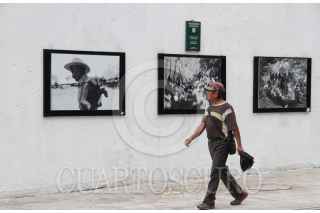 CIUDAD DE MÉXICO, 10JULIO2017.- Los transeúntes que caminan por la calle de Artículo 123, entre la avenida Balderas y la calle de Humboldt, detienen su marcha presurosa para observar las imágenes que integran la exposición "Retrospectiva de Pedro Valtierra". FOTO: MOISÉS PABLO /CUARTOSCURO.COM