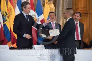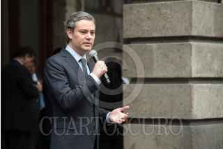 CIUDAD DE MÉXICO, 10JULIO2017.- Aurelio Nuño, secretario de Educación Pública, durante su mensaje a medios de comunicación al finalizar la entrega de títulos y cédulas profesionales a profesores que concluyeron su proceso de evaluación como parte del Acuerdo 590, el cual es una opción de titulación que profesores de escuelas normales pueden realizar mediante la aplicación de un examen general de conocimientos, o mediante un posgrado. El evento tuvo lugar en el Salón Iberoamericano de las instalaciones de la Secretaría de Educación Pública (SEP). FOTO: MARIO JASSO /CUARTOSCURO.COM