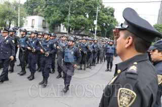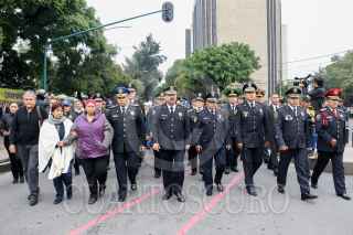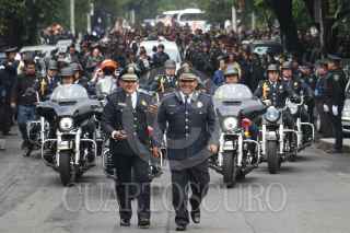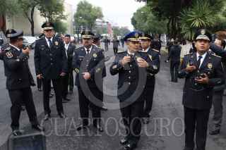CIUDAD DE MÉXICO, 11JULIO2017.- Hiram Almeida, Secretario de Seguridad Pública de la Ciudad de México acompañados de mandos de la institución encabezaron la caravana luctosa donde se le rindió un homenaje al policia caído Pedro Reyes Magdaleno quien fue asesinado el día de ayer tras evitar un asalto a una sucursal de la CFE en la delegación Coyoacán. FOTO: SAÚL LÓPEZ /CUARTOSCURO.COM