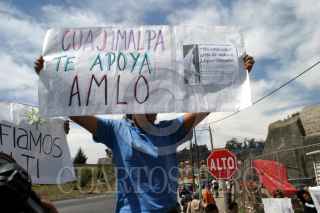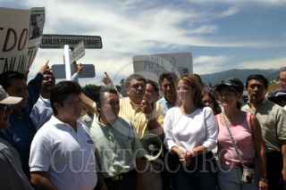 México, D. F. 23 Mayo 2004.- Vecinos de la delegación Cuajimalpa manifiestan su apoyo a Andrés Manuel López Obrador, jefe de gobierno capitalino, durante el recorrido que relizaron diputados locales en el predio el Encino. FOTO: Nelly Salas/CUARTOSCURO.COM