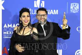 CIUDAD DE MÉXICO, 12JULIO2017.- Mizti Arreola y Amir Galván, directores de La Cuarta Compañía, fueron galardonados con el Ariel a mejor película en la edición 59 de los premios. FOTO: GALO CAÑAS /CUARTOSCURO.COM