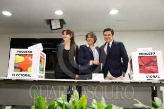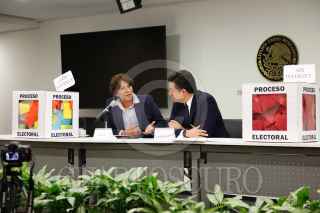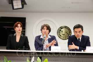 CIUDAD DE MÉXICO, 12JULIO2017.- Delfina Gómez, ex candidata a la gubernatura del Estado de México; Zoé Robledo, senador de MORENA Paola Félix Díaz, Diputada de Morena, ofrecieron una conferencia de prensa para presentar la inictaiva #sininternethayfraude. FOTO: CUARTOSCURO.COM