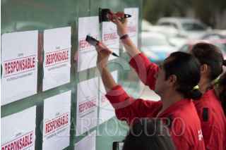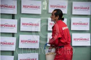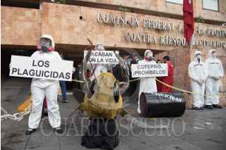 CIUDAD DE MÉXICO, 12JULIO2017.- Una decena de activistas de Greenpeace depositaron una abeja de papel maché de casi dos metros de largo, representando un ejemplar sin vida, en la entrada de las oficinas de la Comisión Federal para la Protección con los Riesgos Sanitarios (Cofepris) para demandar la prohibición de Plaguicidas Altamente Peligrosos (PAP). Los activistas además invitaron a la ciudadanía a participar y les entregaron abejas reales sin vida para concientizar sobre los impactos de las PAP. FOTO: MARIO JASSO /CUARTOSCURO.COM