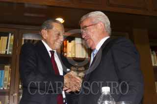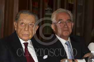 CIUDAD DE MEXICO, 13JULIO2017.- Miguel Alemán Velasco, presidente de la Fundación Miguel Alemán, y Bernardo Quintana Isaac, miembro del Consejo de Administración del ICA, durante la presentación del libro "El primer multifamliar moderno Centro Urbano Presidente Miguel Alemán", que cumplió 70 años de construirse. Este publicación se edito también, para conmemorar la creación de ICA (Ingenieros Civiles Asociados), encargados de construir el multifamiliar, el cual fue su primer proyecto. FOTO: MOISÉS PABLO /CUARTOSCURO.COM