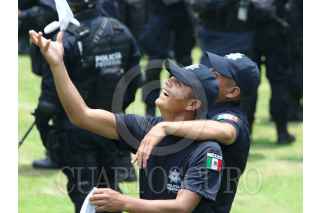 CIUDAD DE MÉXICO, 13JULIO2017.- Elementos del grupo del Grupo de Operaciones Especiales (GOPES) de la Policía Federal realizó un demostración aérea para conmemorar el 89 aniversario de la Policía Federal, realizado en el Centro de Alto Mando ubicado en la delegación Iztapalapa. FOTO : SAÚL LÓPEZ /CUARTOSCURO.COM