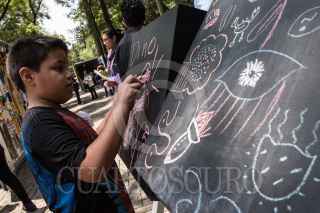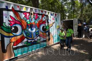 CIUDAD DE MÉXICO, 14JULIO2017.- Niños asistieron a divertirse en los contenedores intervenidos por los artistas visuales Root Rises en el Bosque de Chapultepec. Los infantes realizaron diversas dinamicas, desde videojuegos o pintar en diversas plataformas. FOTO: TERCERO DÍAZ /CUARTOSCURO.COM