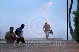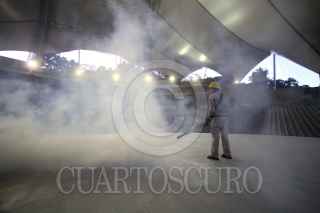 OAXACA, OAXACA, 14JULIO2017.- Trabajadores del área de Paludismo fumigaron las instalaciones del auditorio Guelaguetza y sus alrededores, esto con la finalidad de que no se reproduzca el mosquito transmisor de diversa enfermedades como el zika, chinkungunya y dengue. Además esto forma parte de los operativos de salud realizados en torno a las fiestas de la Guelaguetza. FOTO: ARTURO PÉREZ ALFONSO/ CUARTOSCURO.COM