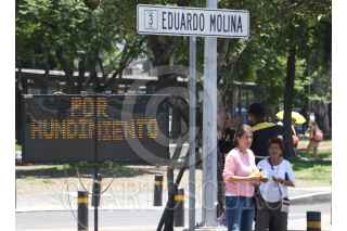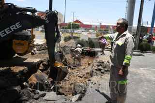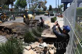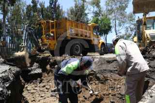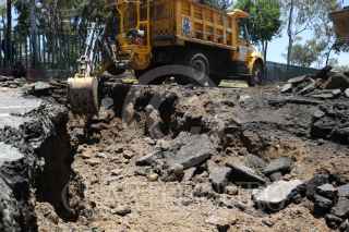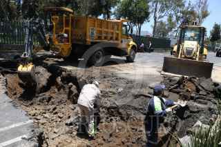 CIUDAD DE MÉXICO, 15JULIO2017.- Personal de Protección Civil, trabajadores de Sacmex y de la Secretaria de Obras trabajan para reparar un socavón que se produjo por una antigua falla geológica y una fuga de agua sobre la avenida Eduardo Molina frente a la plaza comercial oriente. La estación del metrobús Preparatoria 3 se encuentra cerrada hasta que terminen la reparación de la avenida. FOTO: SAÚL LÓPEZ /CUARTOSCURO.COM